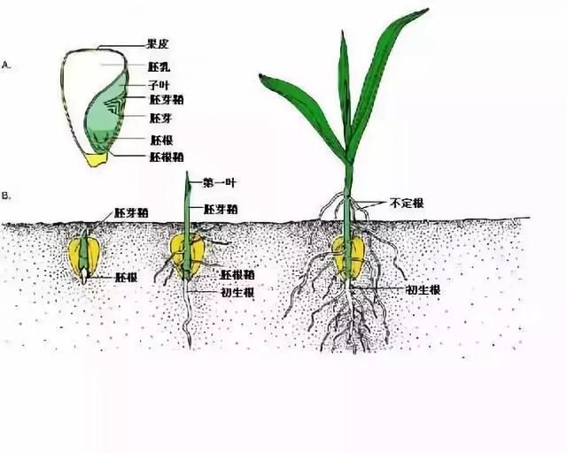 水、溫度、氧氣是種子發(fā)芽、出苗的三個最基本條件。玉米種子由兩部分組成,一部分是將來長成植株的“胎兒”, 名稱叫胚;另一部分是供“胎兒”長大的營養(yǎng)物質(zhì),名稱叫胚乳。